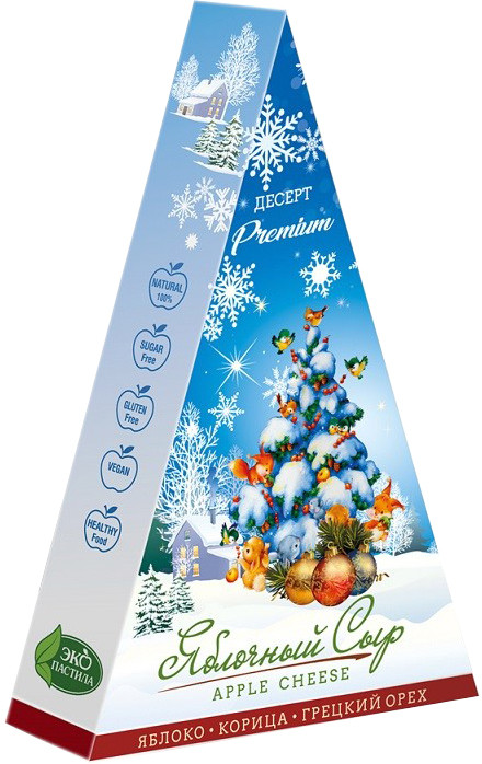 Думала яблочный сыр будет таким же треугольным, но внутри лежал кругляшок меньше размером. На укус жестковато, на вкус вкусно. Можно на подарок, для себя маловато в упаковке. Беру другую пастилу, мягче и дешевле.