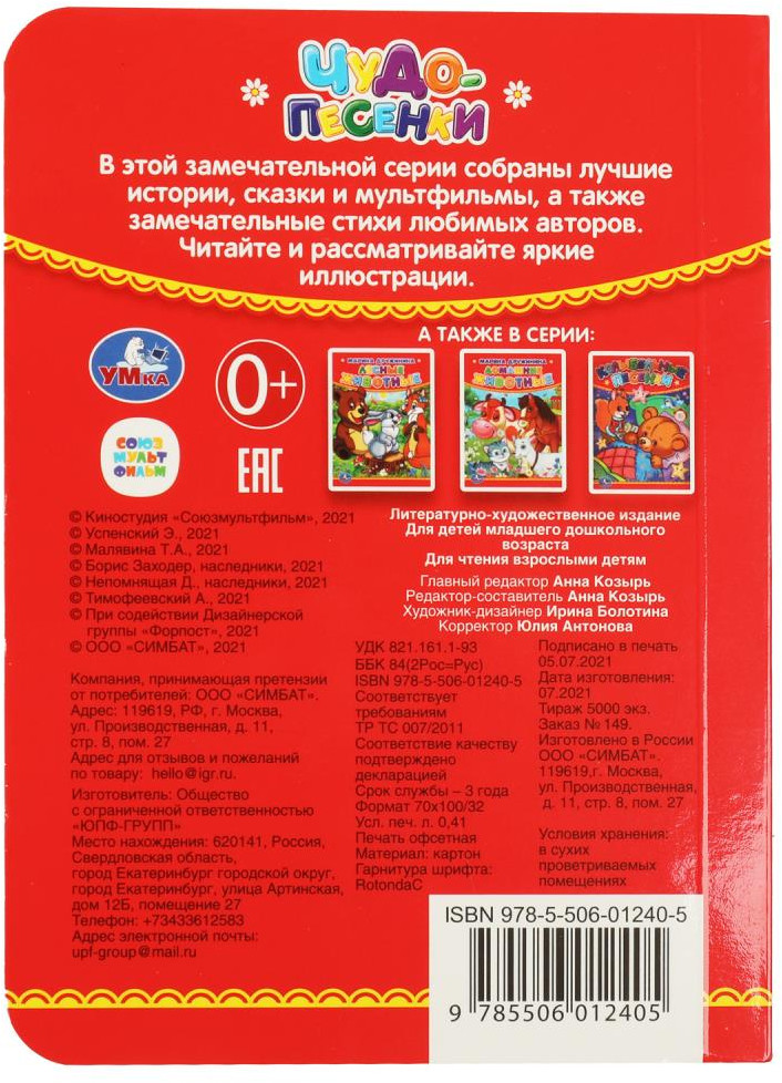 УМка Книга развивающая «Чудо-песенки»