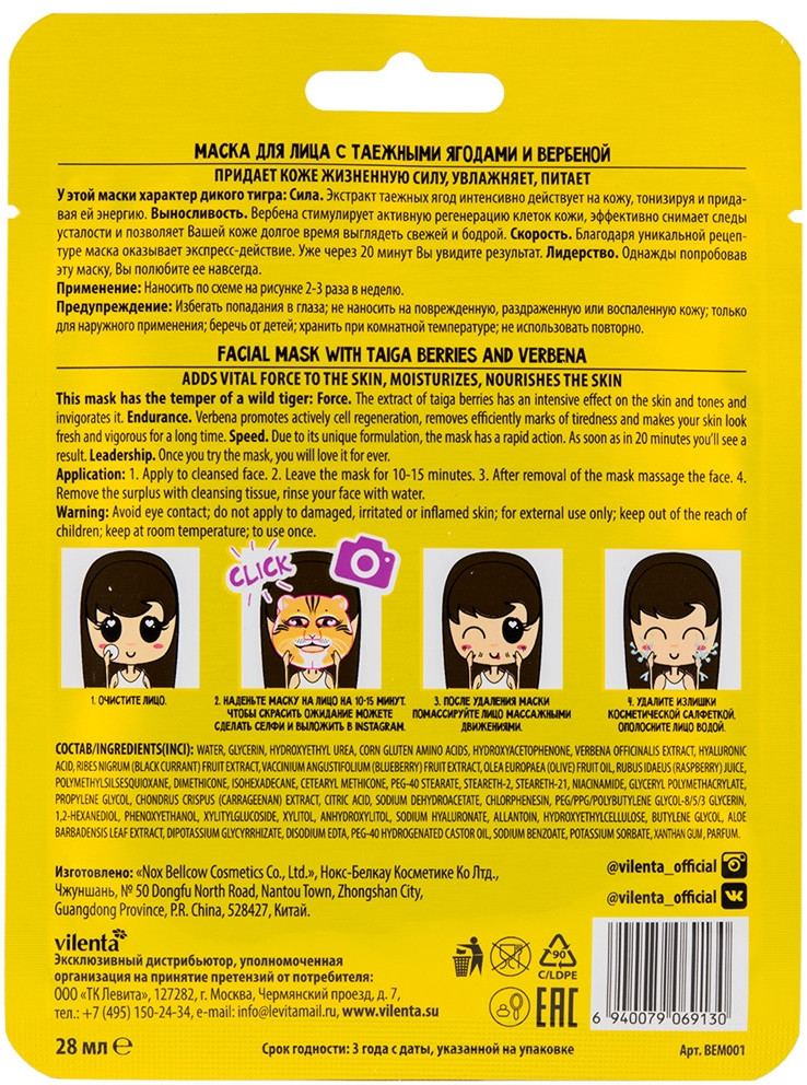 Vilenta Маска для лица «Wild Tiger-r-r» с таёжными ягодами и вербеной