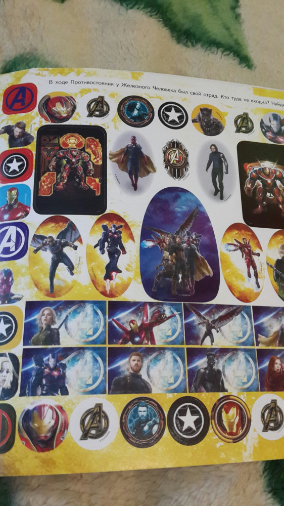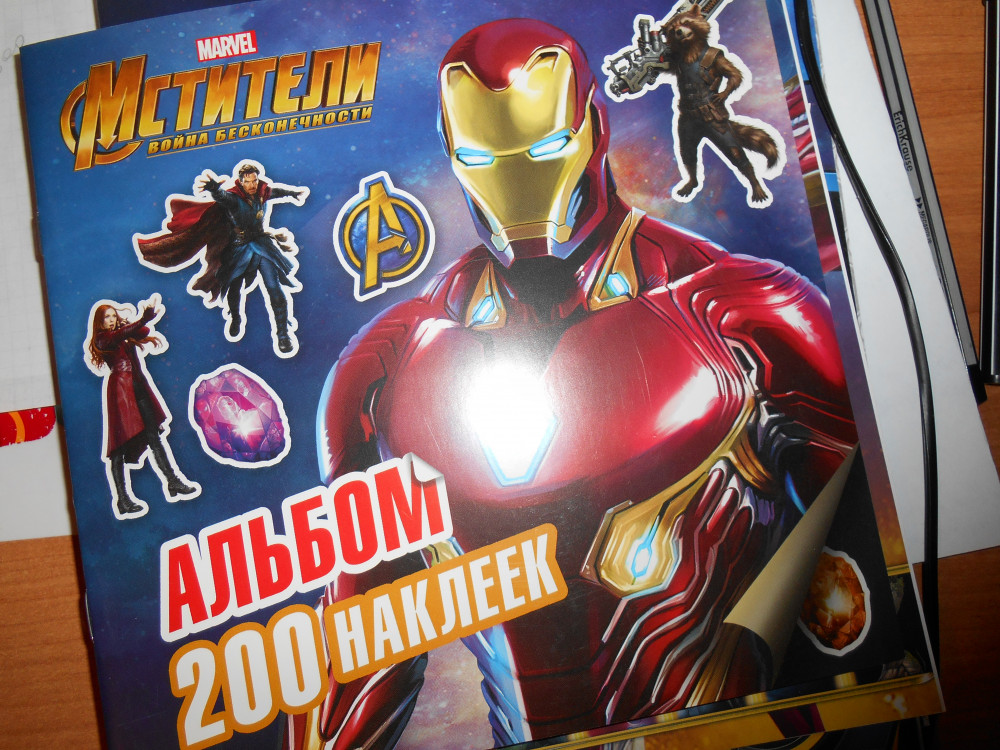 Наклейками не доволен. Качество так себе. Принт ужасный. Наклейки с Доктором Стрэнджам и Вандой всего по одной.
