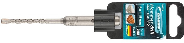 Бур торговой марки Gross относится к режущим инструментам и предназначен для получения отверстий в твердых материалах: бетоне, камне, кирпиче. Режущая твердосплавная пластина, впаянная в бур, имеет наивысшую прочность. Тип хвостовика данной профессиональной линейки буров – Sds Plus. Вершина спирали бура — прямоугольной формы. Благодаря такой, инновационной конструкции при сверлении твердых материалов более эффективно происходит удаление большого объема шлама.