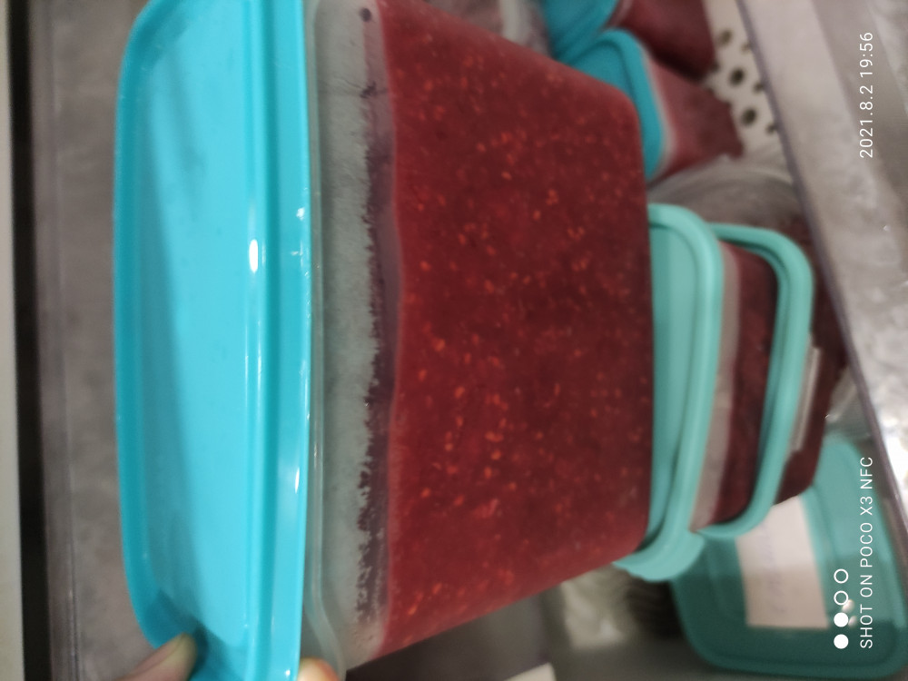 Вполне хороший контейнер за свою цену, для заморозки ягод самое то. На 1 контейнер у меня ушло ровно 1 кг перетертой малины. Крышка закрывается плотно