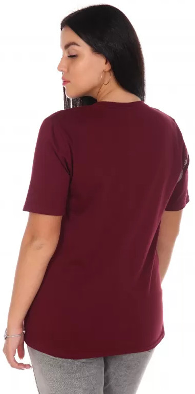брала темнобордового цвета... по сравнению с другими футболками нужно было брать на размер больше. Ткань тонкая. В целом очень интересно выглядит. Можно смело покупать.