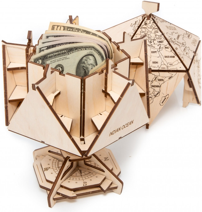 EWA Eco-Wood-Аrt Конструктор деревянный 3D «Глобус-икосаэдр с секретом»