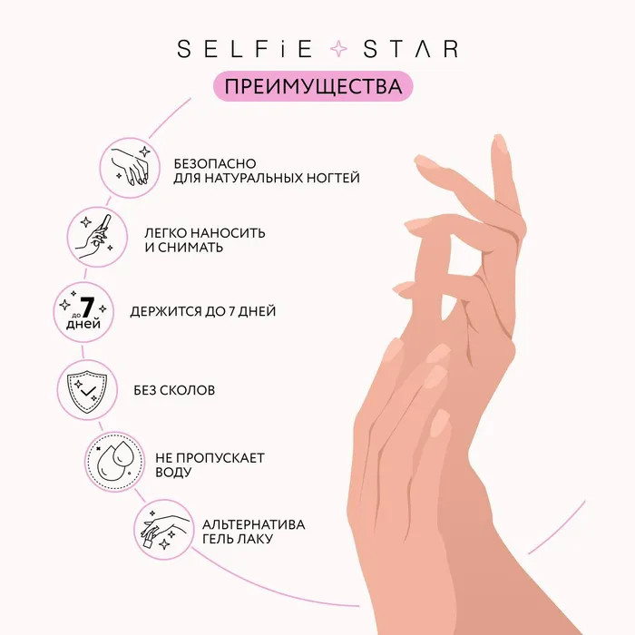 Набор накладных ногтей от корейского бренда Selfie Star – это быстрая, удобная и безопасная альтернатива гель-лаковому покрытию. Создай свой неповторимый маникюр всего за несколько минут и наслаждайся результатом до 7-ми дней! Набор «Сиреневый Эльф», короткой длины – это нежное сочетание эльфийсих мотивов и молодой цветущей сирени, которое подойдет для любого повода и стиля. Ощути себя как в сказке!