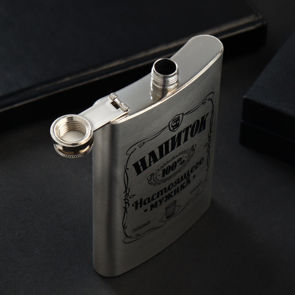 Выбрать подарок мужчине — задача не из лёгких. Но мы знаем секрет идеального презента для представителя сильного пола. Встречайте! Фляжка — это необычный дизайн, удобная форма и качественные материалы. Оригинальный принт на изделии подчеркнёт характер мужчины, а благодаря оптимальному объёму фляжку можно брать с собой куда угодно: в лес на шашлыки, на прогулку в парк или в дальнюю дорогу.