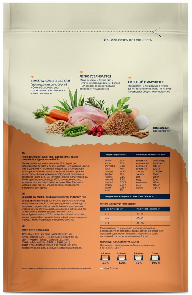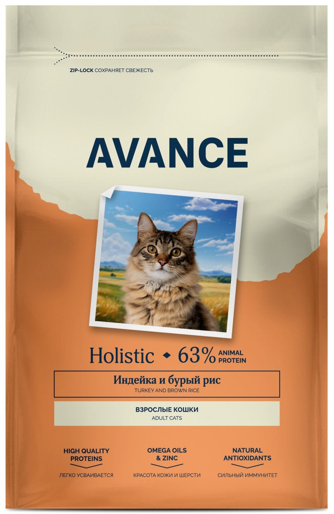 Avance Корм сухой для взрослых кошек с индейкой и бурым рисом