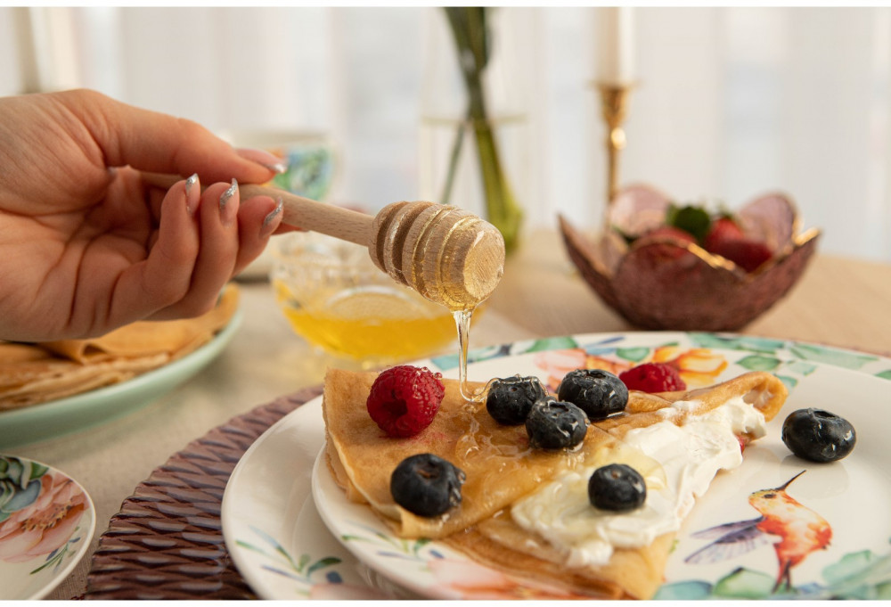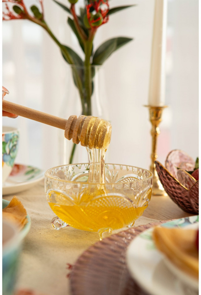 Ложка для меда — полезный аксессуар, выполненный из экологически чистого натурального дерева — бука. Специальный ребра ложки захватывают мед не позволяя ему стекать. Ложка для меда имеет длинную ручку, благодаря которой ей удобно пользоваться. Ложка не имеет токсичного красочного покрытия. Перед первым применением ее необходимо помыть и промаслить.