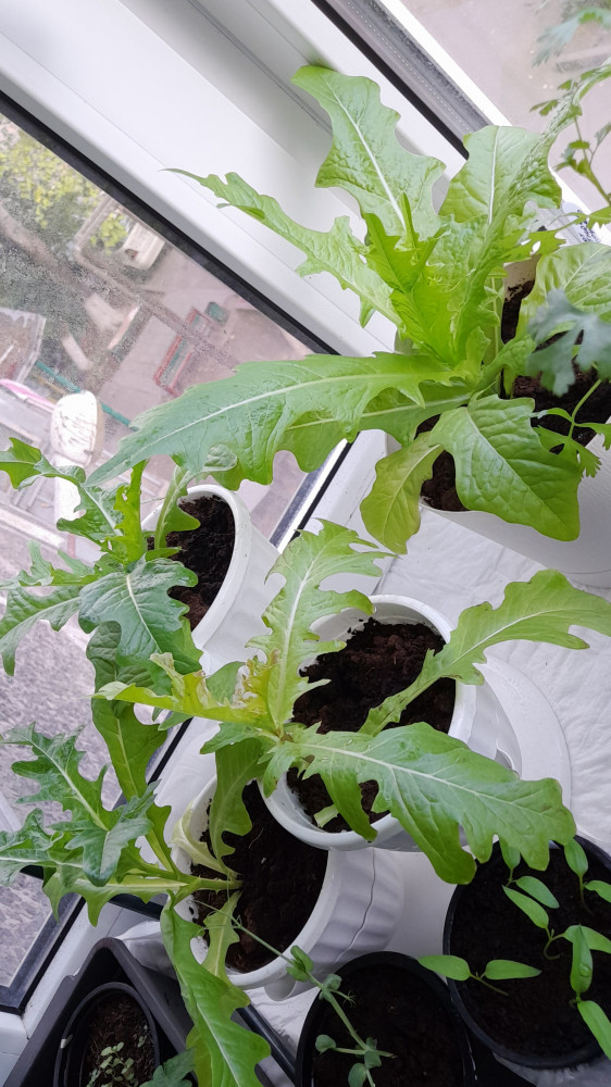 взошли все семена, сейчас едим салат. вкусный, нежные листья, без горечи.